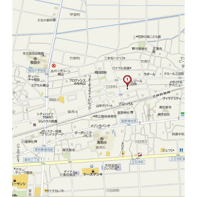 近鉄鈴鹿線 三日市/徒歩9分 近鉄鈴鹿線 平田町/徒歩19分 関西本線 河曲/徒歩53分 |